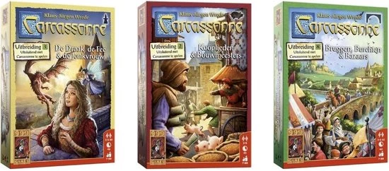 De omgeving van Carcassonne wordt geteisterd door een rondzwervende draak. Dappere helden proberen hun horigen tegen het reusachtige monster te beschermen, maar zonder hulp van de fee staan ze volkomen machteloos. In de stad flirt de jonkvrouw met afgeleide ridders, terwijl boeren via magische poorten aan de aandacht van de draak trachten te ontsnappen. Carcassonne wordt met de uitbreiding De Draak, de Fee en de Jonkvrouw pas echt een sprookje!Hoe combineer ik de verschillende Carcassonne-producten?