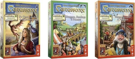 De omgeving van Carcassonne wordt geteisterd door een rondzwervende draak. Dappere helden proberen hun horigen tegen het reusachtige monster te beschermen, maar zonder hulp van de fee staan ze volkomen machteloos. In de stad flirt de jonkvrouw met afgeleide ridders, terwijl boeren via magische poorten aan de aandacht van de draak trachten te ontsnappen. Carcassonne wordt met de uitbreiding De Draak, de Fee en de Jonkvrouw pas echt een sprookje!Hoe combineer ik de verschillende Carcassonne-producten?