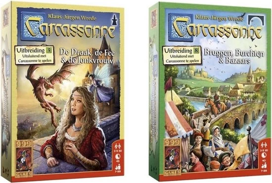 De omgeving van Carcassonne wordt geteisterd door een rondzwervende draak. Dappere helden proberen hun horigen tegen het reusachtige monster te beschermen, maar zonder hulp van de fee staan ze volkomen machteloos. In de stad flirt de jonkvrouw met afgeleide ridders, terwijl boeren via magische poorten aan de aandacht van de draak trachten te ontsnappen. Carcassonne wordt met de uitbreiding De Draak, de Fee en de Jonkvrouw pas echt een sprookje!Hoe combineer ik de verschillende Carcassonne-producten?