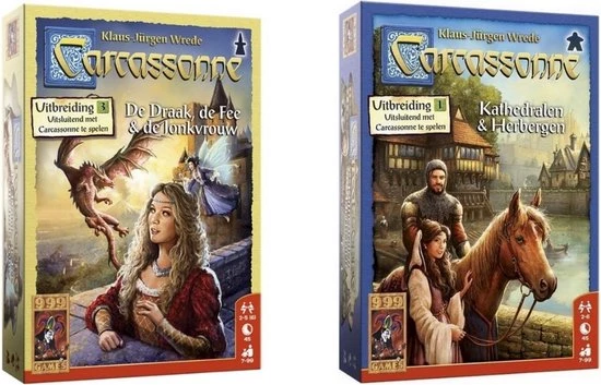 De omgeving van Carcassonne wordt geteisterd door een rondzwervende draak. Dappere helden proberen hun horigen tegen het reusachtige monster te beschermen, maar zonder hulp van de fee staan ze volkomen machteloos. In de stad flirt de jonkvrouw met afgeleide ridders, terwijl boeren via magische poorten aan de aandacht van de draak trachten te ontsnappen. Carcassonne wordt met de uitbreiding De Draak, de Fee en de Jonkvrouw pas echt een sprookje!Hoe combineer ik de verschillende Carcassonne-producten?