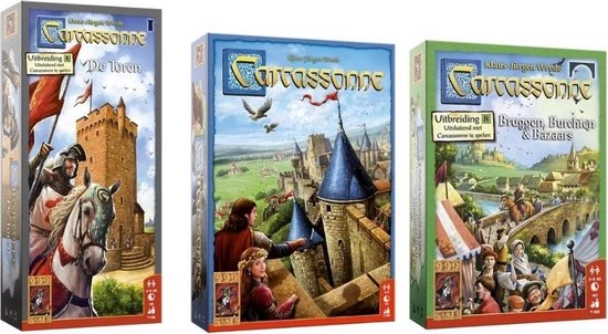 Nieuwe versie van de uitbreiding op het populaire legspel Carcassonne Bouw gezamenlijk aan torens om meeples van andere spelers gevangen te nemen. Als 2 partijen een meeple van elkaar hebben opgesloten, wisselen ze deze weer uit. Meeples zijn te beschermen door een toren in bezit te nemen. In combinatie met het basisspel is deze uitbreiding met ten hoogste 5 spelers te spelen, maar met Kathedralen & Herbergen kan er nog een speler meedoen. Carcassonne: De Toren is de ideale uitbreiding voor spelers die het een genot vinden om hun tegenstanders goed dwars te zitten.Hoe combineer ik de verschillende Carcassonne-producten?