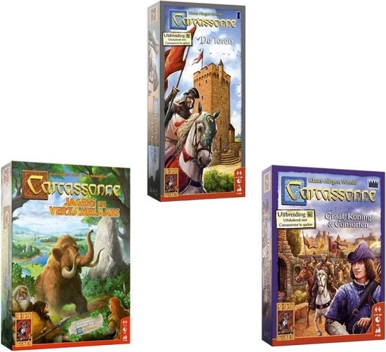 Nieuwe versie van de uitbreiding op het populaire legspel Carcassonne Bouw gezamenlijk aan torens om meeples van andere spelers gevangen te nemen. Als 2 partijen een meeple van elkaar hebben opgesloten, wisselen ze deze weer uit. Meeples zijn te beschermen door een toren in bezit te nemen. In combinatie met het basisspel is deze uitbreiding met ten hoogste 5 spelers te spelen, maar met Kathedralen & Herbergen kan er nog een speler meedoen. Carcassonne: De Toren is de ideale uitbreiding voor spelers die het een genot vinden om hun tegenstanders goed dwars te zitten.Hoe combineer ik de verschillende Carcassonne-producten?