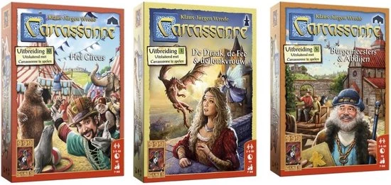 De omgeving van Carcassonne wordt geteisterd door een rondzwervende draak. Dappere helden proberen hun horigen tegen het reusachtige monster te beschermen, maar zonder hulp van de fee staan ze volkomen machteloos. In de stad flirt de jonkvrouw met afgeleide ridders, terwijl boeren via magische poorten aan de aandacht van de draak trachten te ontsnappen. Carcassonne wordt met de uitbreiding De Draak, de Fee en de Jonkvrouw pas echt een sprookje!Hoe combineer ik de verschillende Carcassonne-producten?