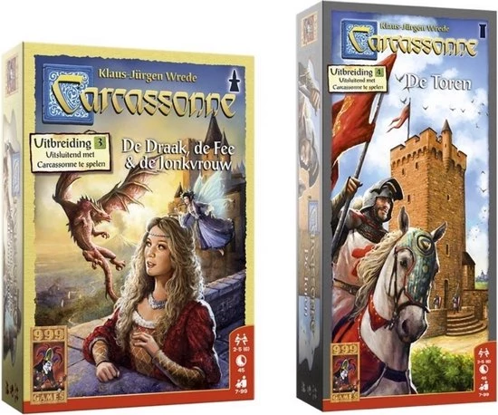 De omgeving van Carcassonne wordt geteisterd door een rondzwervende draak. Dappere helden proberen hun horigen tegen het reusachtige monster te beschermen, maar zonder hulp van de fee staan ze volkomen machteloos. In de stad flirt de jonkvrouw met afgeleide ridders, terwijl boeren via magische poorten aan de aandacht van de draak trachten te ontsnappen. Carcassonne wordt met de uitbreiding De Draak, de Fee en de Jonkvrouw pas echt een sprookje!Hoe combineer ik de verschillende Carcassonne-producten?