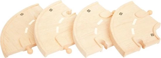 Bigjigs Houten Autoweg Gebogen – 4 stuks