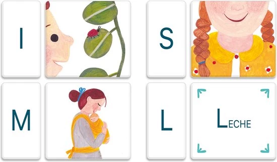 K is voor kus, die ik van mama krijg … Een schattig en educatief spel dat kinderen de letters van het alfabet leert. Met 52 ge√Øllustreerde kaarten leert je kind de letters van het alfabet associ√´ren met de kleine details waar de dag uit bestaat. De kaarten zijn zelfcorrigerend: het kind kan het antwoord controleren door de kaarten gewoon om te draaien.