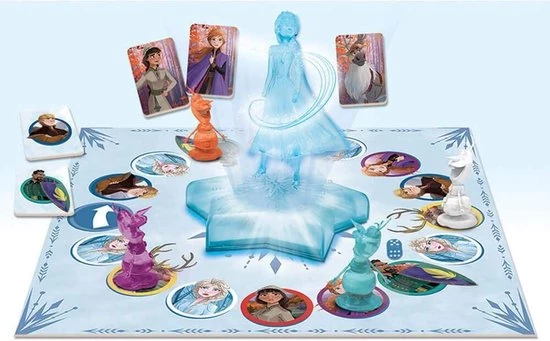 Une aventure magique à la recherche de la source des pouvoirs d’Elsa ! lance les dés et collecte la carte de la case sur laquelle tu tombes: Anna, Olaf, Kristoff, Sven ou Arendelle. Pose les ensuite devant toi, côté du personnage ou Arendelle visible. Quand tu tombes sur la case Elsa, demande lui de l’aide en appuyant sur sa figurine translucide au centre du plateau