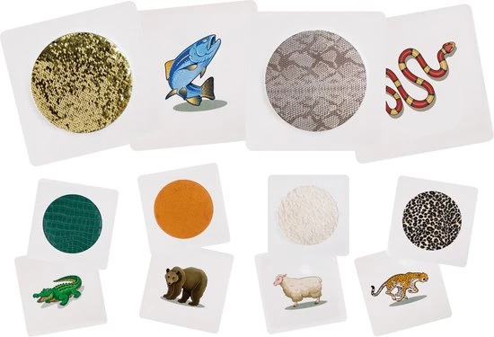 Met deze voelkaarten kunnen kinderen ook een keer niet alledaagse dieren voelen, zoals een schaap een krokodil of een slang. Nagebootst met kunststof, wol, kunstleer en vilt. Afmeting: 16,5 x 16,5 cm. Geschikt voor kinderen vanaf 3 jaar.