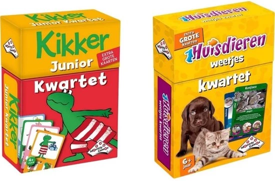 Huisdieren Weetjeskwartet. Kwartet, het allerleukste kaartspel voor de hele familie! Met de mooiste plaatjes en weetjes over je lievelings huisdier. Waarom piept een cavia? En hoe oud kan een goudvis?