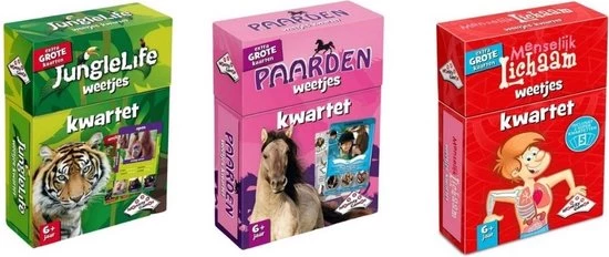 Menselijk Lichaam Kwartet Kwartet is het leukste kaartspel voor de hele familie. Op de kaarten staan de mooiste plaatjes en leukste weetjes. Hoe komt het bijvoorbeeld dat je moet plassen wanneer je water hoort? Inhoud 38 extra grote, gelamineerde speelkaarten+ spelregels. Speelduur 20 min. Aantal spelers 2-4. Leeftijd 6+.