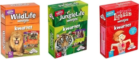 JungleLife weetjes kwartet bestaat uit extra grote kaarten met de mooiste plaatjes én weetjes over de betreffende dieren. Dat is leuk en leerzaam. Wie spaart de meeste kwartetten? Geschikt voor kinderen vanaf 6 jaar, 2-4 spelers.