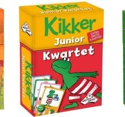 Kwartetten met Kikker, het leukste kaartspel voor kinderen waarbij steeds vier kaarten bij elkaar gezocht worden. ‘Kwartet! Met leuke illustraties van Kikker en zijn vriendjes! Wat heeft eend nodig in de winter? Wat krijgt Kikker voor zijn verjaardag? Wat neemt Rat mee op vakantie?