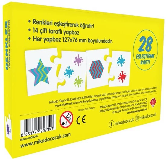Odaklanma sorunu olan ?ocuklar i?in ?ok etkili bir oyun olan yapboz ayn? zamanda ?zg?ven geli?tirici e?lenceli bir e?itimdir. Hayvanlar, bitkiler ve nesnelerden olu?an kartlar ile ?ocu?unuz, renkleri ??renerek yapboz par?alar?n? e?le?tirdik?e ?zg?veni geli?ecek, e?lenerek ??renmenin tad?n? ??karacak.