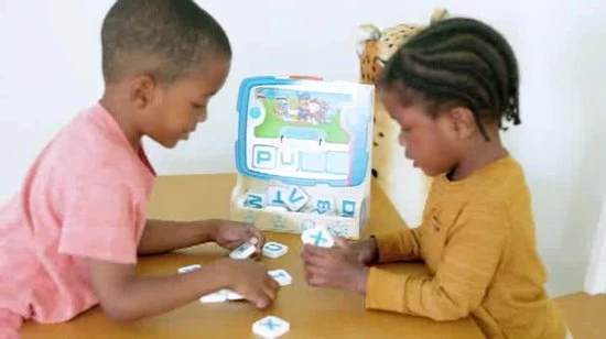 - Inclusief 26 dubbelzijdige letterblokjes en 15 dubbelzijdige spellingkaarten. Schuif een kaart in de houten puppy tablet en gebruik de letterblokjes om het weergegeven woord te spellen.
