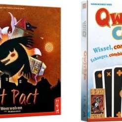 Compleet Weerwolvenpakket voor liefst 47 spelers! Met deze doos haal je in één keer alles in huis wat je nodig hebt om De Weerwolven van Wakkerdam met maar liefst 47 personen te kunnen spelen. Naast het basisspel bevat Het Pact de uitbreidingen Volle Maan, Karakters en Het Dorp. Met Weerwolven: Het Pact hoef je je nooit meer af te vragen wat je met een grote groep kunt spelen. Burgers, weerwolven, kwaadaardige en extreem goede karakters, beroepen, gebouwen, alles zit erin om de spannende strijd tussen de burgers en de weerwolven nog onvergetelijker te maken. De verschillende varianten zorgen ervoor dat geen spel hetzelfde is. Weerwolven: Het Pact garandeert vele avonden interactief speelplezier!