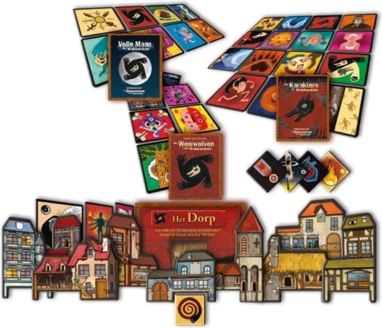Compleet Weerwolvenpakket voor liefst 47 spelers! Met deze doos haal je in één keer alles in huis wat je nodig hebt om De Weerwolven van Wakkerdam met maar liefst 47 personen te kunnen spelen. Naast het basisspel bevat Het Pact de uitbreidingen Volle Maan, Karakters en Het Dorp. Met Weerwolven: Het Pact hoef je je nooit meer af te vragen wat je met een grote groep kunt spelen. Burgers, weerwolven, kwaadaardige en extreem goede karakters, beroepen, gebouwen, alles zit erin om de spannende strijd tussen de burgers en de weerwolven nog onvergetelijker te maken. De verschillende varianten zorgen ervoor dat geen spel hetzelfde is. Weerwolven: Het Pact garandeert vele avonden interactief speelplezier!