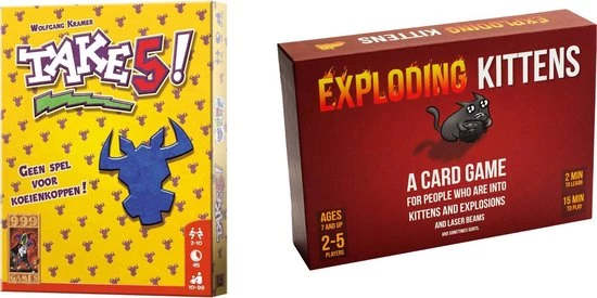Nederlandstalige versie van het populaire kaartspel Exploding Kittens. Exploding Kittens is een fantastisch kaartspel voor mensen die van katten, explosies, laserstralen en soms ook van geiten houden. Dit tactische spel is een variant van Russisch roulette, maar dan met exploderende kittens. Je neemt kaarten van de stapel totdat je één van de gevreesde exploderende kittens trekt. Dan heb je meteen verloren. Met alle andere kaarten kun je jezelf verdedigen, aanvallen, een beurt overslaan of de katten afleiden.