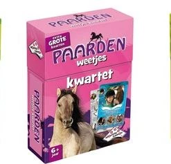 Paarden weetjes kwartet, een oer-Hollands kaartspel waarin steeds 4 kaarten bij elkaar gespaard worden. In dit kwartet vind je allerlei informatie over paarden, afgebeeld op extra grote kaarten. Op deze kaarten staan foto’s en ook nog eens interessante weetjes! Waarom rolt een paard? Wat eet een paard? en nog veel meer! Inhoud: 38 kaarten. Voor 2 tot 4 spelers vanaf 6 jaar. Speelduur: ongeveer 20 minuten.