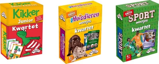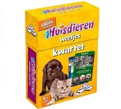 Huisdieren Weetjeskwartet. Kwartet, het allerleukste kaartspel voor de hele familie! Met de mooiste plaatjes en weetjes over je lievelings huisdier. Waarom piept een cavia? En hoe oud kan een goudvis?