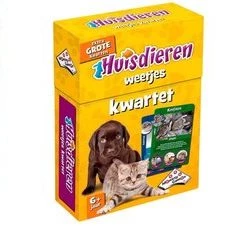 Huisdieren Weetjeskwartet. Kwartet, het allerleukste kaartspel voor de hele familie! Met de mooiste plaatjes en weetjes over je lievelings huisdier. Waarom piept een cavia? En hoe oud kan een goudvis?