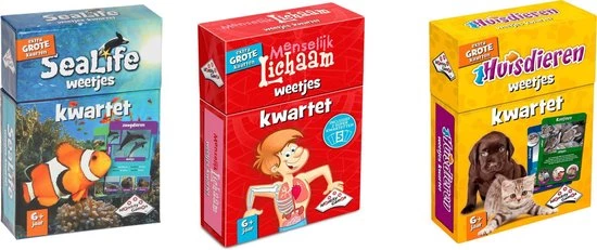 Dit weetjes kwartet is niet alleen een leuk spel.. het is ook nog erg leerzaam. Het Sealife Weetjeskwartet gaat over de dieren uit zeeën en oceanen, afgebeeld op extra grote kaarten.Op deze kaarten staan foto’s en ook nog eens interessante weetjes! Met een superkwartet van 5 kaarten! Hoe oud kan een dolfijn worden? Hoe snel kan een inktvis zwemmen? Hoe zwaar kan een walvis worden?
