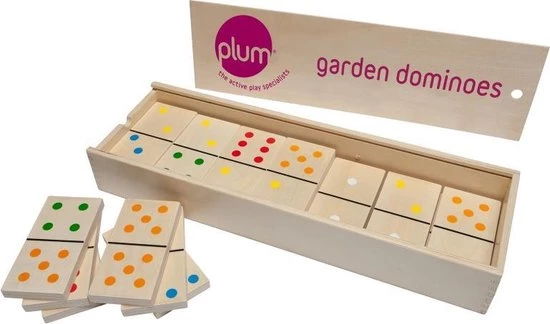 Deze traditionele tuin dominoset is perfect voor het verstrekken van buitenspeelplezier voor het hele gezin. Bestaat uit 28 houten dominostenen met kleurrijk beschilderde stippen en een houten koffer. Hierdoor is deze set ook ideaal voor kinderen om op hun reizen naar het park of het strand mee te nemen. De plum garden domino set is gemaakt van premium fsc gecertificeerd hout, dat is sterk en stevig en zorgt voor aangenaam buitenspeelplezier voor de komende jaren.