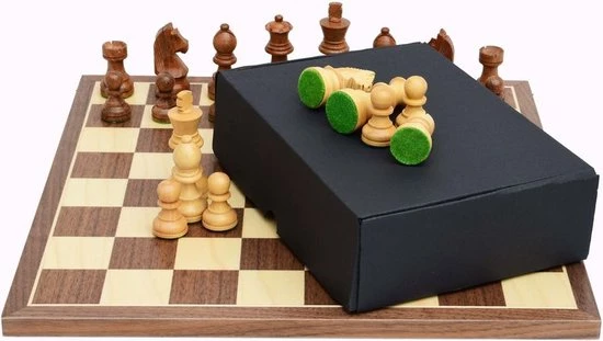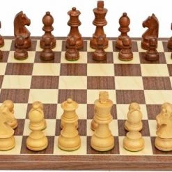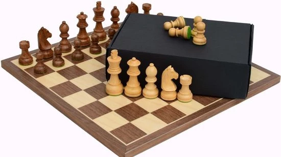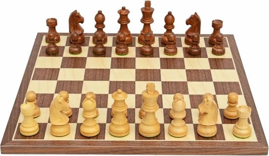 Raindroptime.com Luxe Schaakspel: Schaakbord Walnoot En Esdoorn 35 Cm – Schaakstukken Acacia Nr: 3