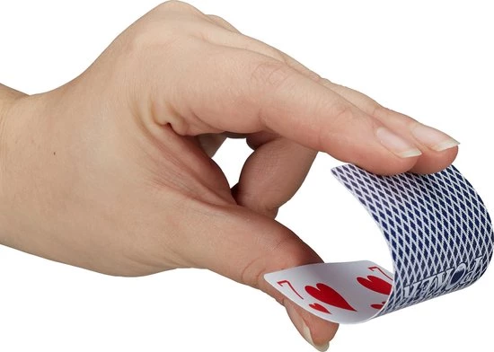 Iedereen kent de nadelen van normale speelkaarten, de kaarten knikken snel en zien er gebruikt uit. Het hoogwaardige pokerspel van plastic behoud zijn vorm en is bovendien ook waterbestendig. Zelfs wanneer bij een rondje pokeren met vrienden een biertje omvalt, kunnen de stevige kaarten eenvoudig schoongemaakt worden. Hierdoor zien de pokerkaarten na vele spelavonden er nog professioneel uit. Het gestructureerde oppervlak van de kaarten maakt het mogelijk om eenvoudig op te rapen. Met de internationale afbeelding voel je je thuis als aan een casino tafel in Las Vegas.