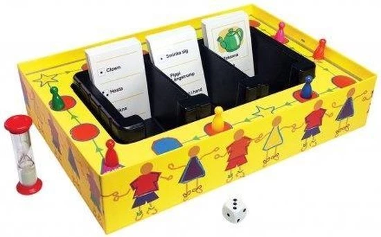 | Verpakkingsinhoud | -, 150, cartes, (dont, 50, imag?es), -, 1, plateau, de, jeu, (int?gr?, ?, la, bo?te), -, 6, pions, de, jeu, -, 1, sablier, -, 1, d?, -, r?gle, de, jeu |