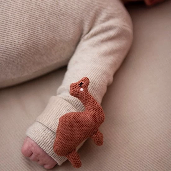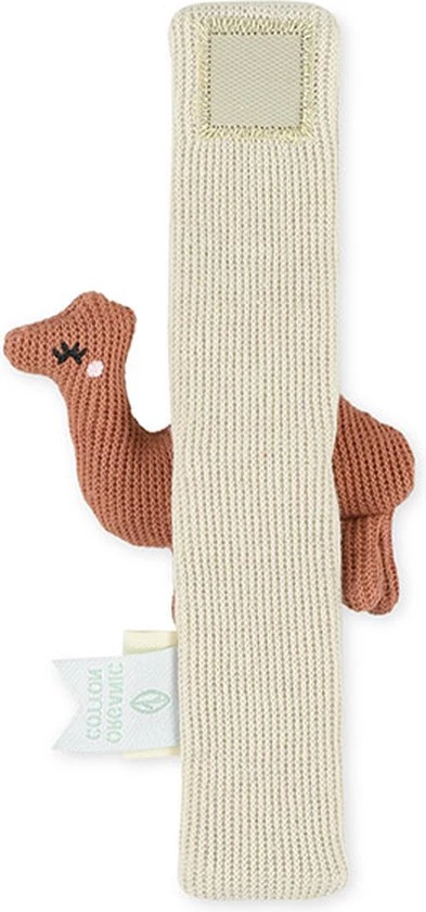 Met deze armbandrammelaar Kameel stimuleer je jouw baby om te bewegen en te ontdekken. Zo zal je kleintje bij elke beweging genieten van het geluid van de rammelaar. De polsrammelaar is gemaakt uit heerlijk zacht gebreid biologisch katoen, comfortabel om te dragen en kan ook om de enkel worden geplaatst als je baby zijn of haar voetjes verkent. Je baby zal genieten van de verschillende texturen van deze rammelaar, die met de vingertjes te ontdekken zijn.