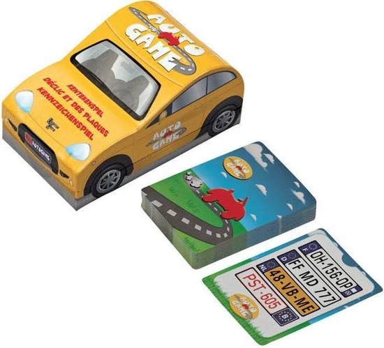 Spelers maken een zin of woordcombinatie met de letters en cijfers van de kentekens op de kaarten.