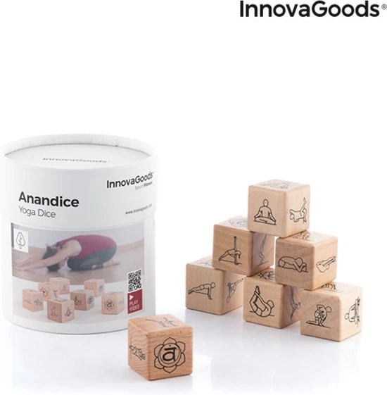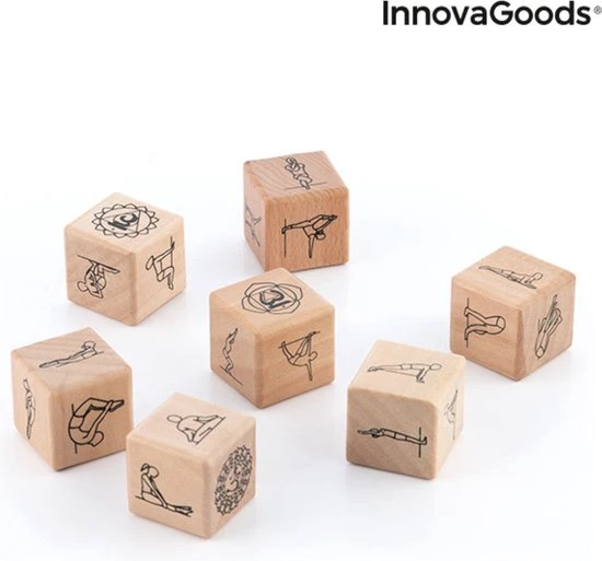 - Zeven houten dobbelstenen metmet verschillende poses aan elke zijde, die een grote inspiratie zal worden voor yoga-liefhebbers